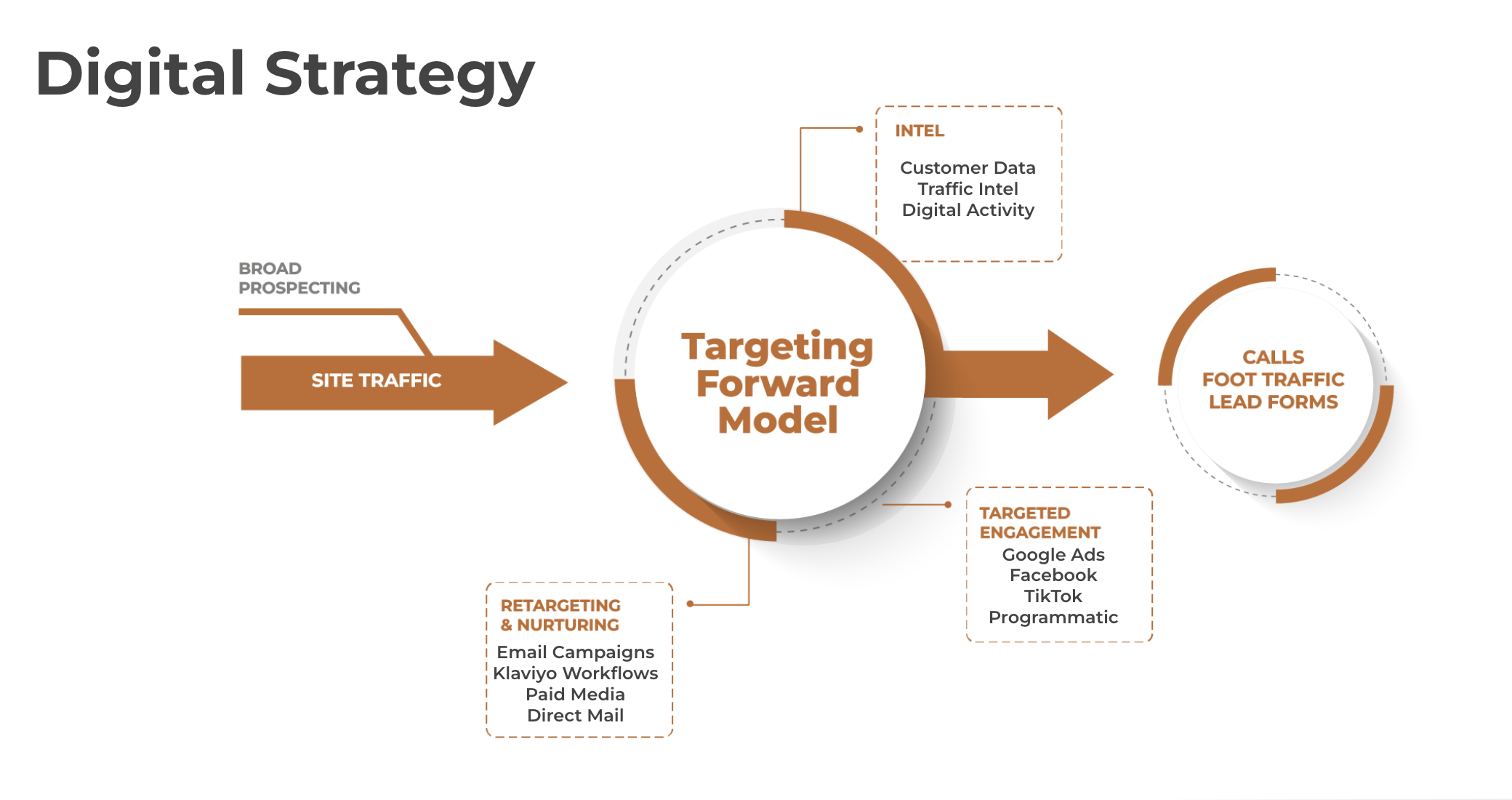 We bring a uniquely strategic approach to retail automotive marketing, aligning cutting-edge tools and tactics with the distinct needs of our dealer partners. Our approach is not just about creating visibility; it’s about creating connections, driving conversions, and fueling your dealership’s success in a highly competitive market.